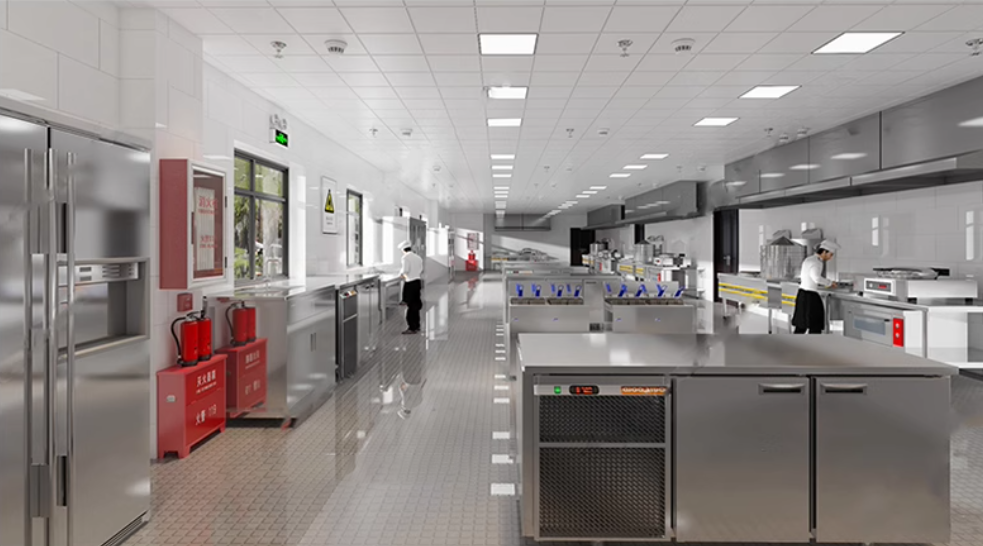 Medium-sized kitchens are kitchens that can produce and serve about 500 guests at the same time. Medium-sized kitchens have a large site area, and most of them have a centralized design and integrated layout for processing, production and output.