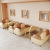 1.Material:The chairs and sofas are all made of solid wood frame, the sofa legs are made of iron, the built-in high-density sponge of the seat cushion is durable and not collapsed, the outer layer is wrapped in imported nappa leather, the tabletop is made of veneer, and the table legs are made of ash wood.