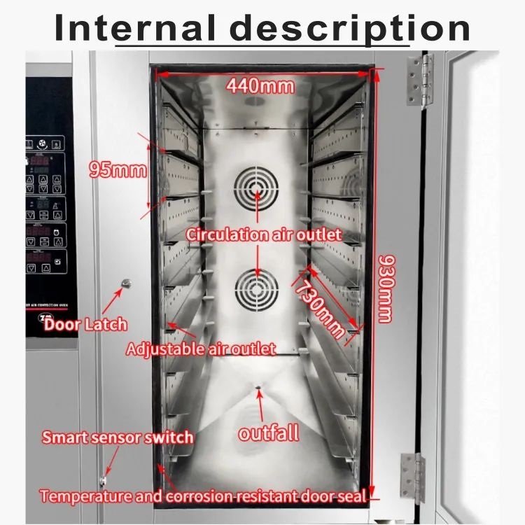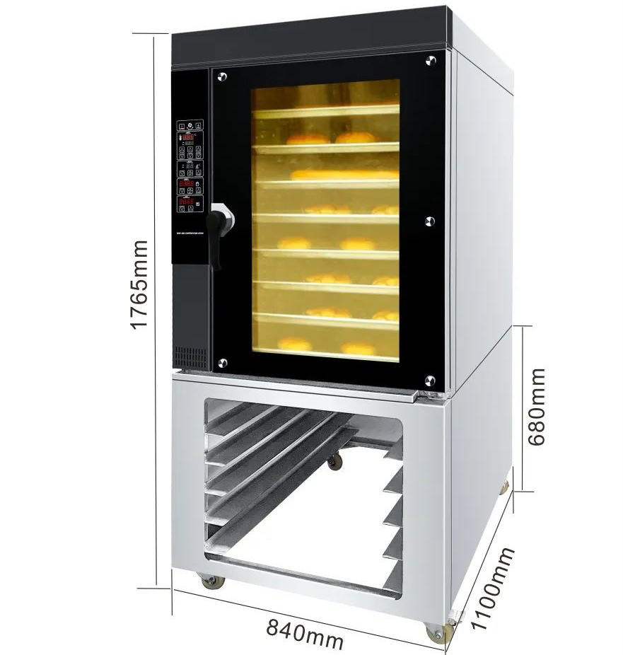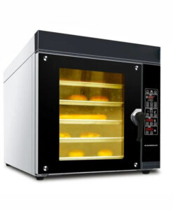 This gas convection oven in China ideal for baking bread, pastries, cakes, cookies, and other baked goods. The multiple trays allow for batch baking, increasing efficiency in commercial bakeries.