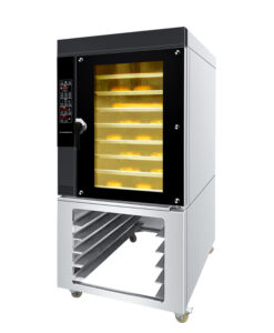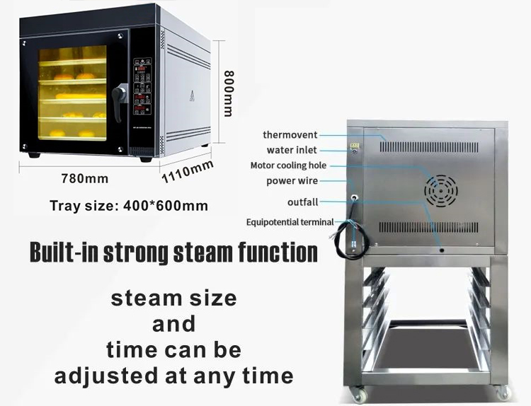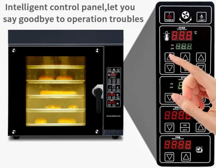 This convection gas oven for sale ideal for baking bread, pastries, cakes, cookies, and other baked goods. The multiple trays allow for batch baking, increasing efficiency in commercial bakeries.
