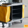 The hotel and restaurant service cart is made of the new PP material with the Professional design and four wheels, it is very durable and strong, it suitable for the house, hotel, restaurant and public places service,laggabe storing with the big capacity garbege bag, and it can carry some cleaning tools and garbage can or mop bucket, therefore, it makes the cleaning working more efficient and effective.