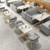 1.Material:The sofa is made of wooden frame. The seat cushion is built with high-density sponge, which is durable and does not collapse.The tabletop is plywood material, and the table legs are metal