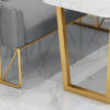 1.Material:The sofa is made of metal frame. The seat cushion is built with high-density sponge, which is durable and does not collapse.The tabletop is plywood with veneer, and the table legs are iron painted